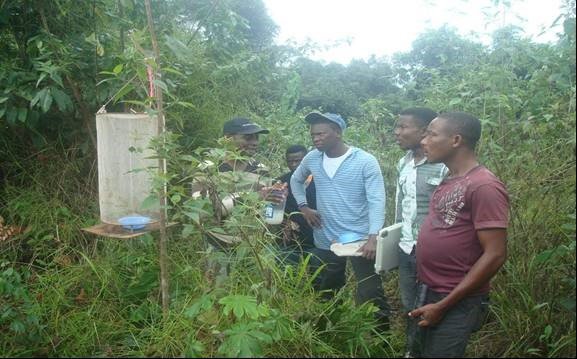 Grel partner KNUST to conduct research in Awudua forest – Team inspecting a butterfly trap