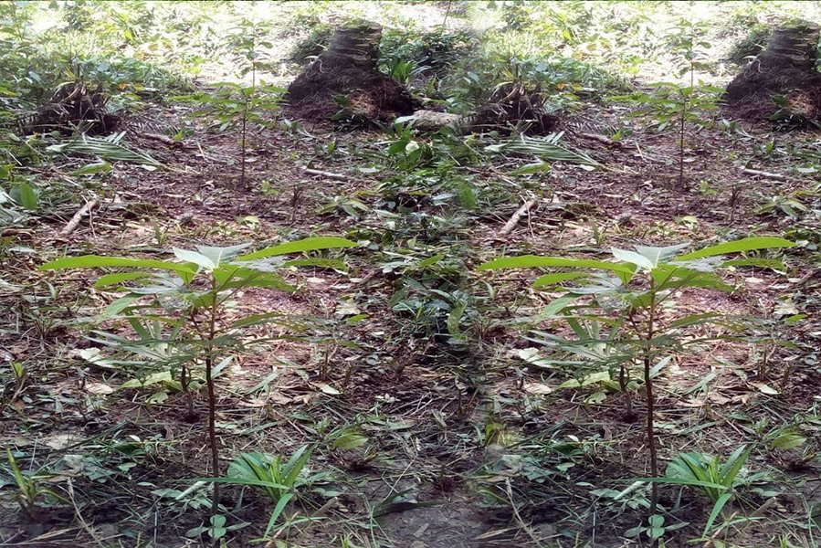 Some timber species planted in lines during the reforestation operation