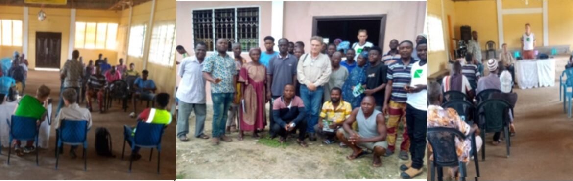 As part of the sensitization program, the CEO of SIPH, Mr. Marc Genot, and Mr. Thierry Cauchy, the MD of GREL, accompanied the RUTAP team led by Mr Florian Dezwaene, Head Of RUTAP, to one of the sensitization events held in the Jomoro Municipal Assembly, of the Western Region of Ghana.
