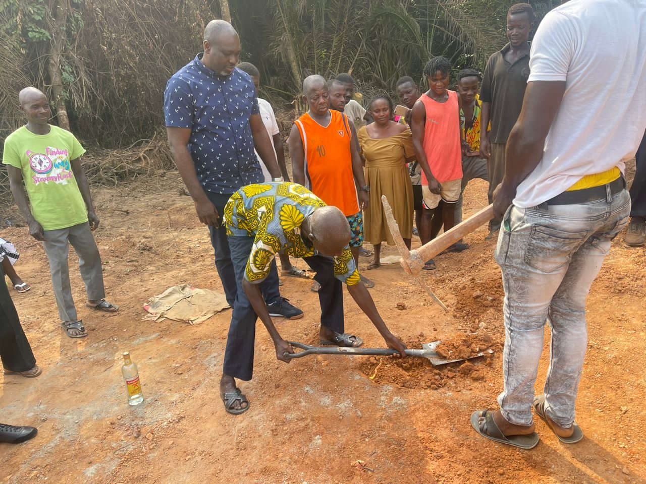 The Corporate Affairs Manager, Mr. Perry ACHEAMPONG, cut the sod on Monday, February 14, 2023, to commence the construction of a 10-seater KVIP toilet project at Komanfokrom in Ahanta West, which is aimed at discouraging open defecating on GREL’s land.